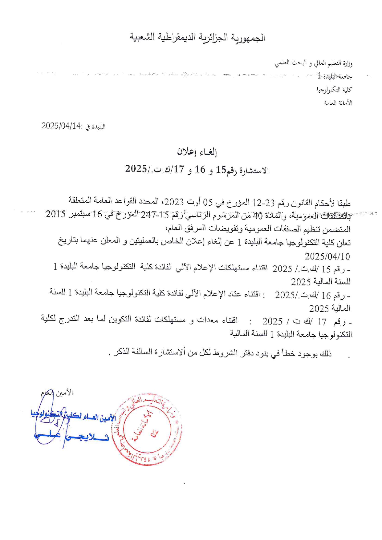 Liste des laboratoires de recherche de l’Université de Blida 1
