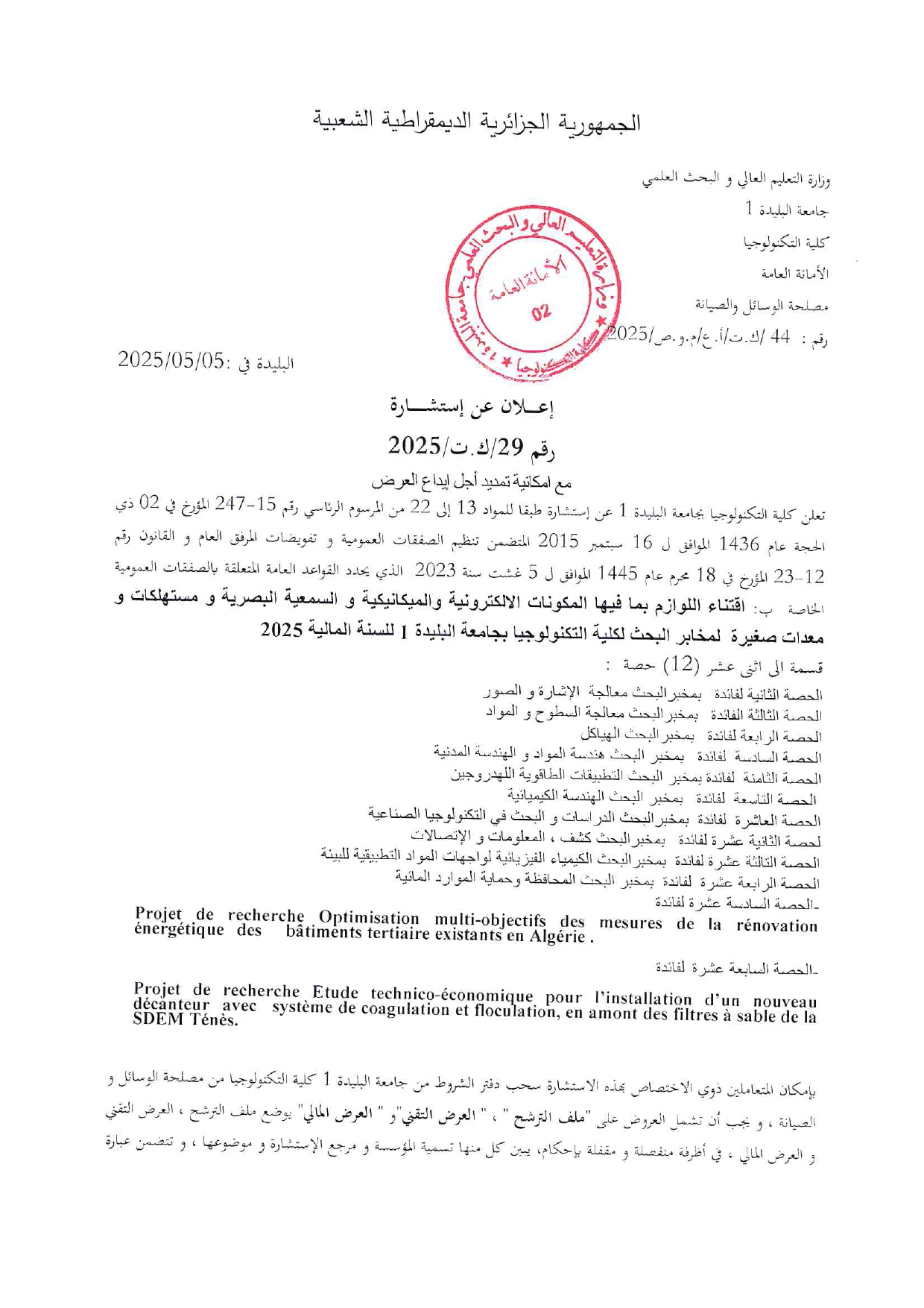 اعلان عن استشارة رقم 29