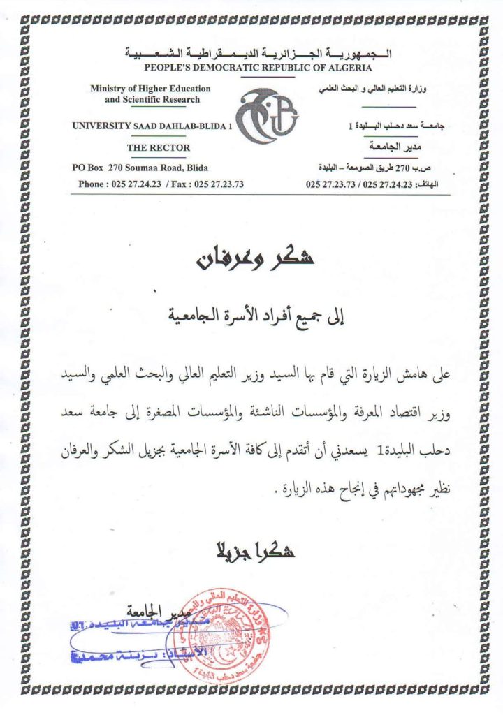 • Vice-Rectorat de la post-graduation et de la recherche scientifique