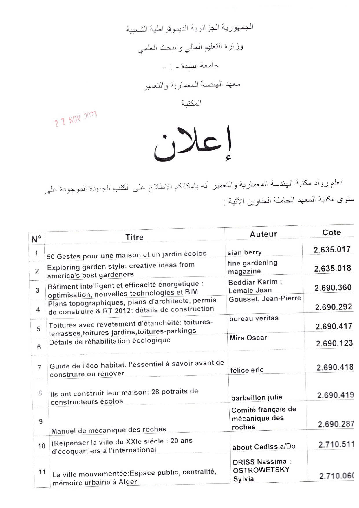 عناوين الكتب الجديدة المتوفرة على مستوى مكتبة المعهد