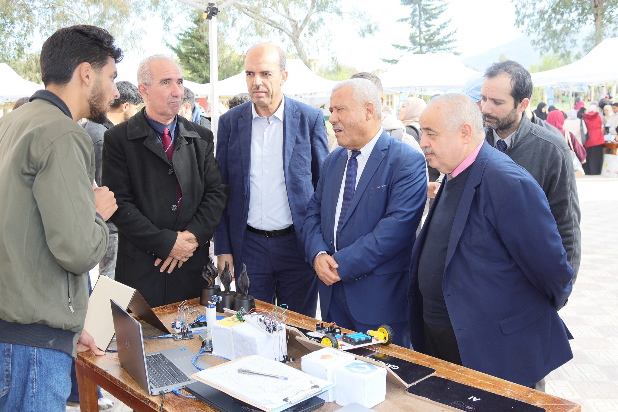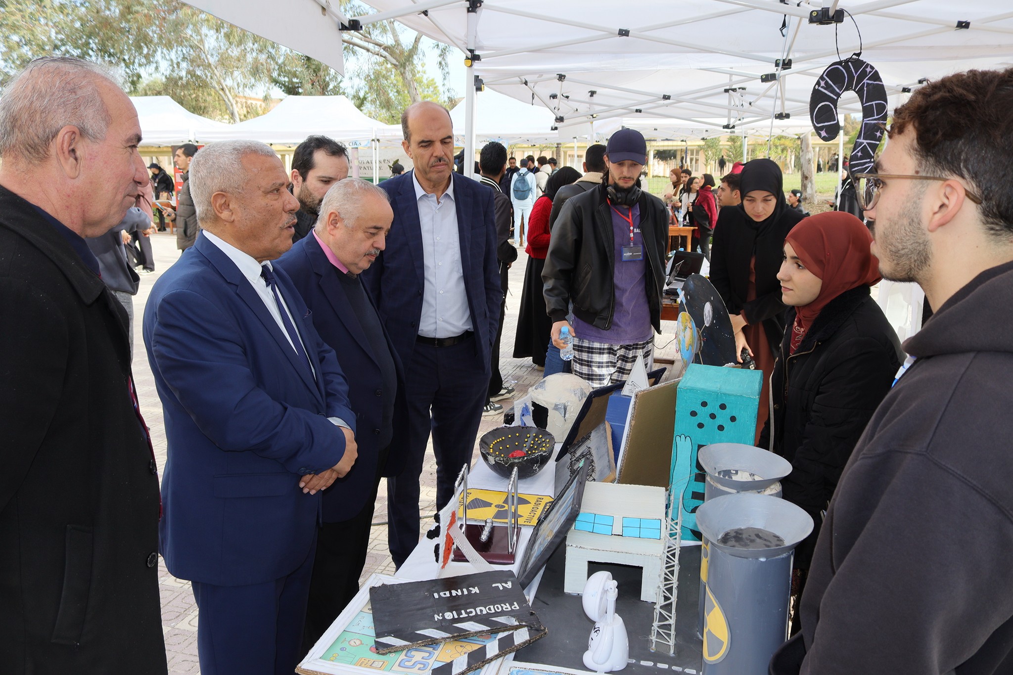 Lerecteur de l’université, le Pr.Mohamed Bezzina, accompagné des vice-recteurs, du secrétaire général et le sous-directeur des activités scientifiques, ont visité les stands organisés par les étudiants des clubs scientifiques, des étudiants de d’autres universités, ainsi que de jeunes innovateurs.