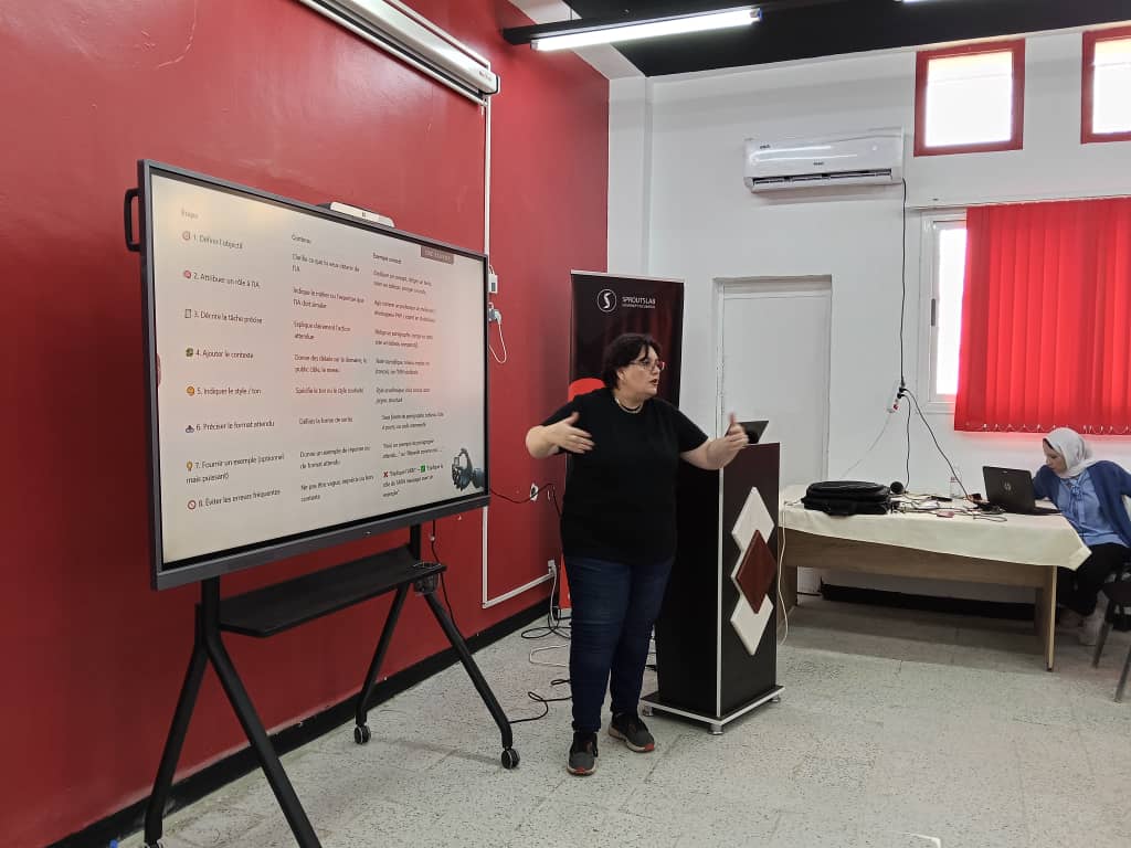 L’atelier, a été encadré par Dr. Simona Alia, et a connu la participation d’enseignants de l’Université. L’objectif de cette formation est de mettre en évidence les applications clés de l'intelligence artificielle qui simplifient et améliorent chaque étape de la recherche scientifique, depuis la collecte et l’analyse des données jusqu’à la publication académique.