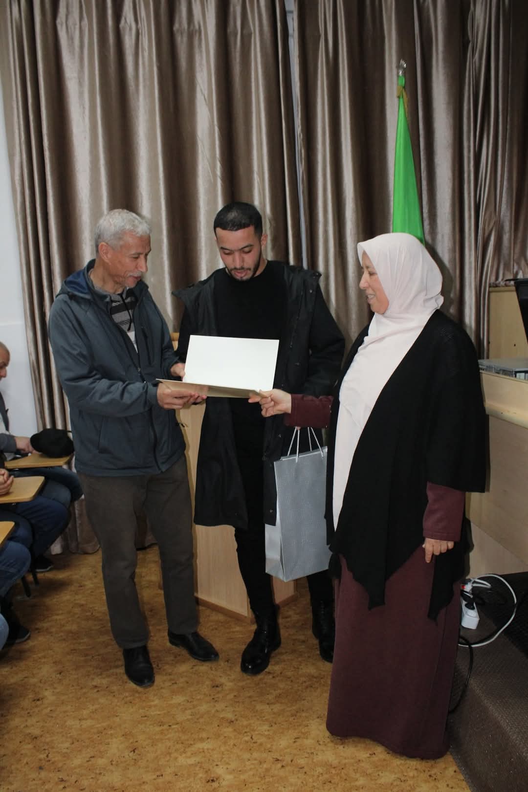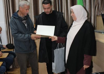 La cérémonie s’est déroulée sous la supervision de la doyenne de la faculté, Pr. Khalida Boutmak, en présence des responsables de la sous-direction des activités scientifiques, culturelles et sportives, ainsi que du personnel de la faculté.