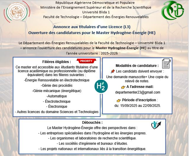 Liste des laboratoires de recherche de l’Université de Blida 1