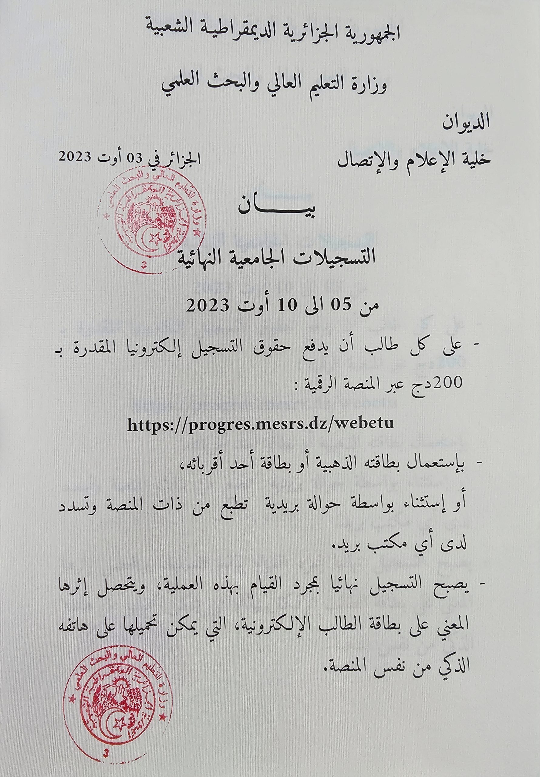 Secrétariat Général de l’Université de Blida 1