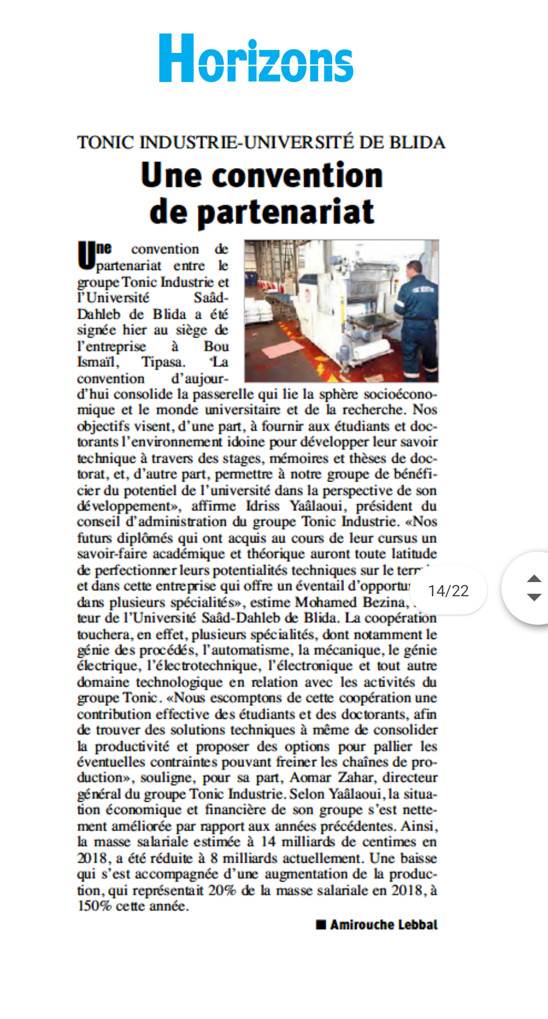 Partenariat signée entre notre université et le groupe Tonic