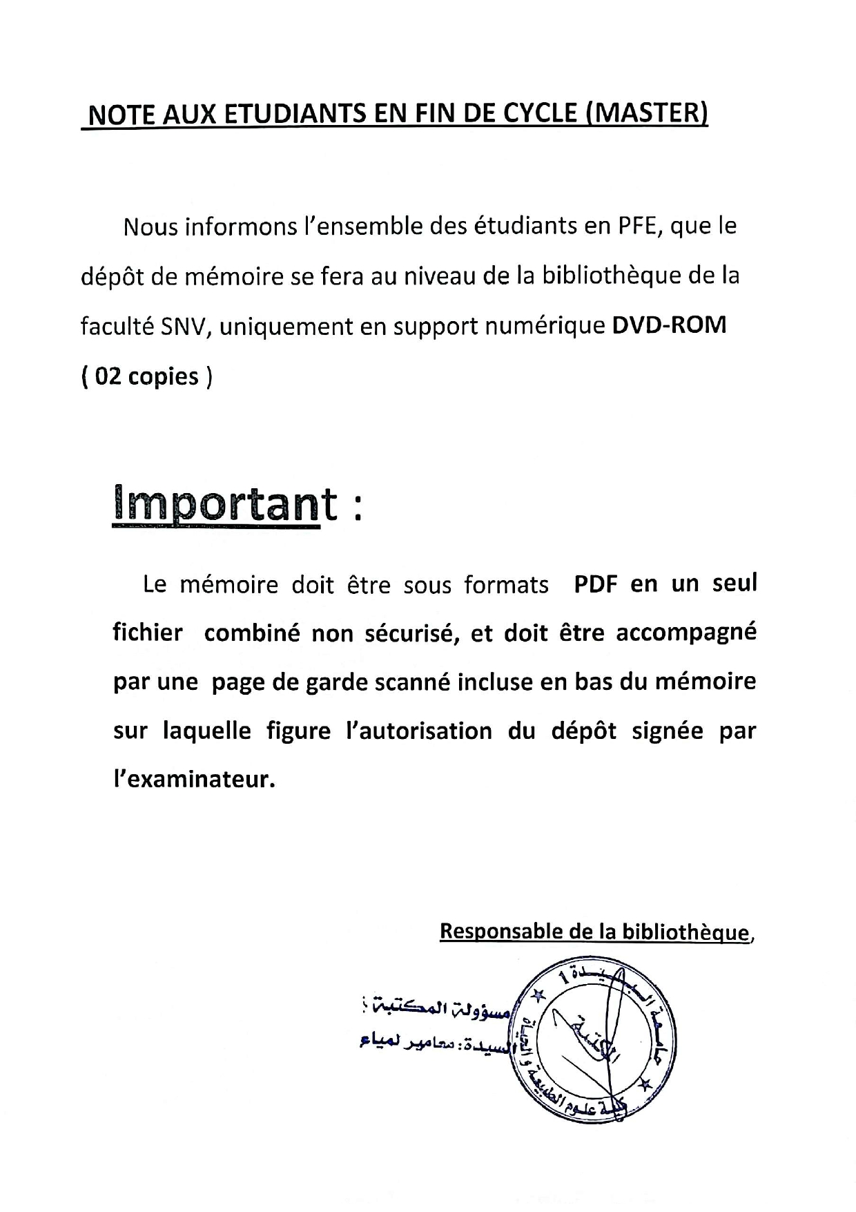 la nouvelle procédure du dépôt de mémoire au sein de la bibliothèque de la faculté