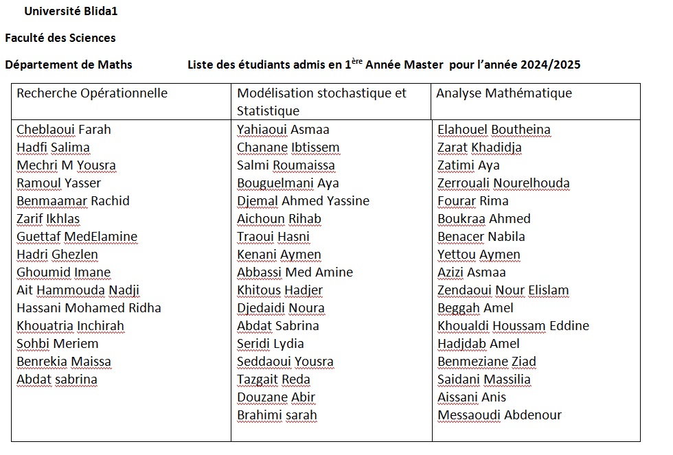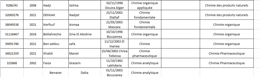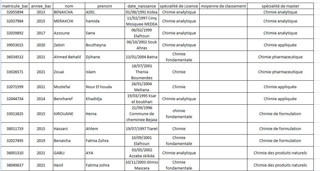 la liste des master 20% pour le département de l’informatique,de chimie et Mathématique .
